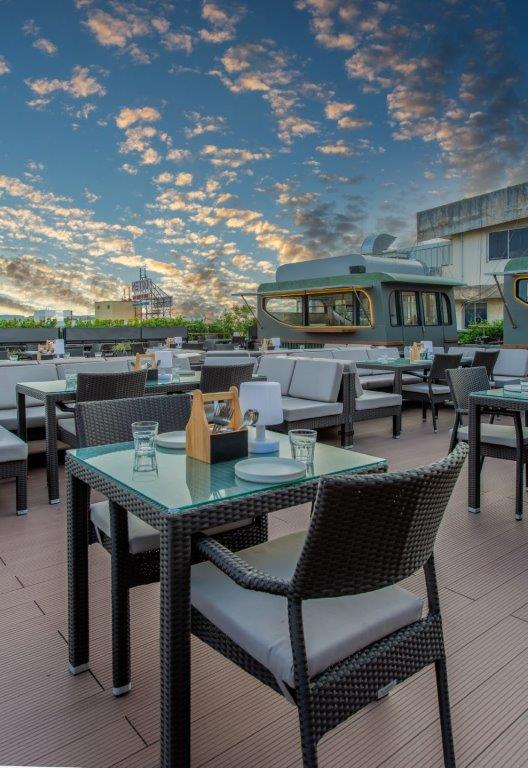 The Requirement: The rooftop section needed outdoor furniture that could withstand direct sunlight, humidity, spills, and constant guest turnover. The requirement included multiple dining configurations—2- seater, 4-seater, and 8-seater arrangements—to accommodate different group sizes and table layouts. Additionally, a customised sofa seating arrangement was required to create a relaxed lounge zone for groups, waiting guests, or extended dining sessions.
